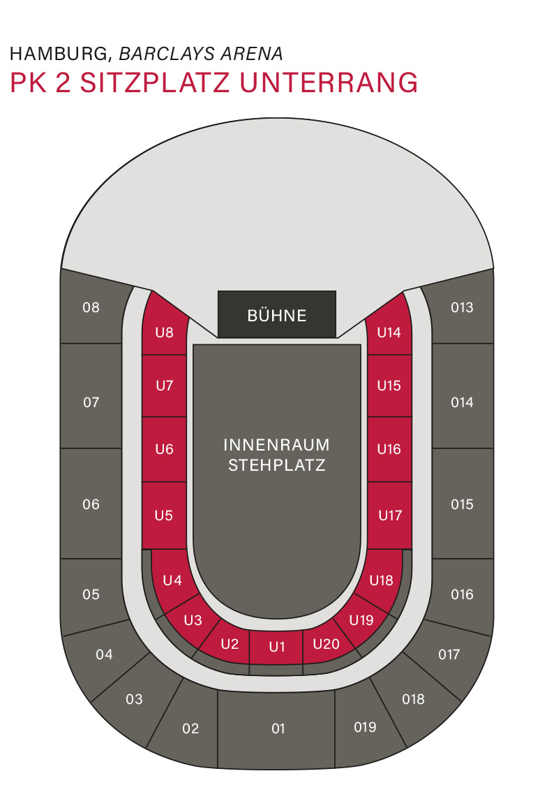 o Erhöhtes Podest vorhanden? Nein, die Rollstuhlplätze befinden sich in Reihe 19 der Blöcke U1 – U4 und U18 – U20 im Unterrang.